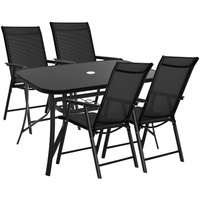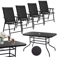 Zestaw mebli ogrodowych stół ze szkłem hartowanym, 4 krzesła komplet na taras czarny