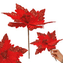 Poinsecja sztuczny kwiat gwiazda betlejemska 28 cm czerwona z brokatem